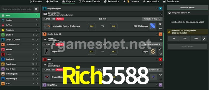 O Rich5588 oferece uma grande seleção de opções de apostas em e-sports com probabilidades competitivas